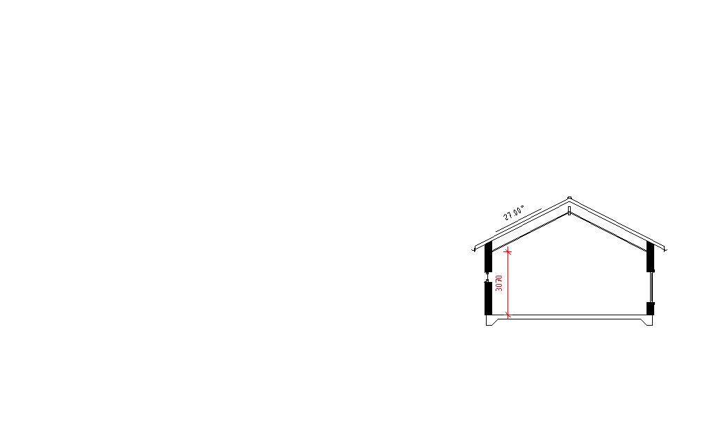 Sektionsritningen visar en genomskärning av bygganden. Beroende på hur komplex byggnaden är kan det behövas flera sektioner på samma byggnad. I detta exempel redovisas taklutning och måttsättning för innertakhöjd.