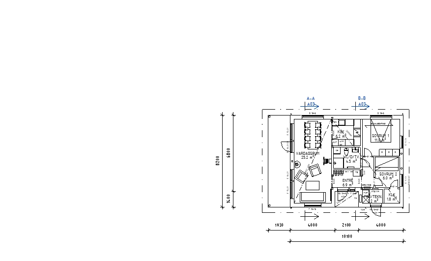 Planritningar ritas vanligast i skala 1:100.